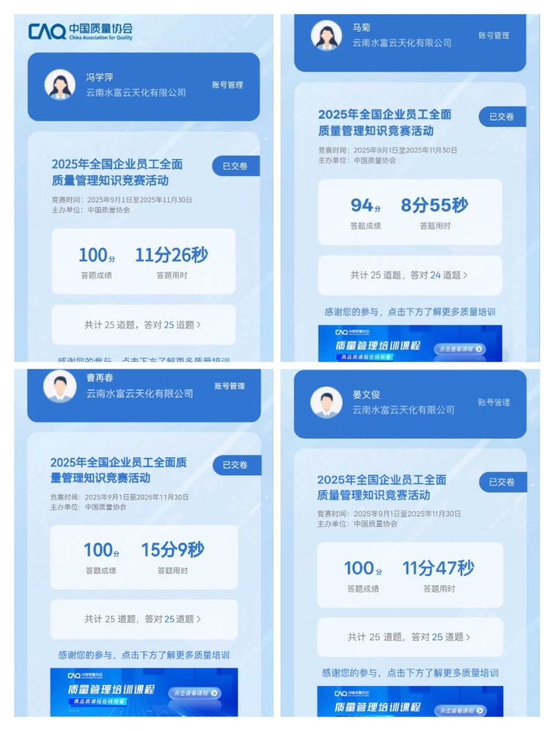 竞赛内容涵盖全面质量管理相关理念、方法和工具,以及其他质量管理应知应会知识。采用线上答题形式,包括20道单选题和5道多选题。活动期间,各班组通过班组会议、显示工作平台等多种渠道进行广泛动员,员工们充分利用工余时间积极参与。通过学习和竞赛答题,不仅加深了大家对全面质量管理核心理念和工具的理解,更提升了全体质量意识和专业技能,增强了运用质量管理方法解决实际问题的能力。