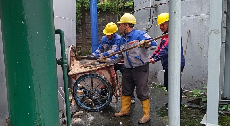 3GF是生产水系统过滤的重要设备,因长时间运行,滤料失效板结,严重影响生产水过滤效果,并对水质及硬度控制造成不利影响。上午8:30分,卸砂人员办理好相关票证,准备好铲子,水枪等相关工具,在安全员交代安全后,卸砂工作全面铺开。由于3GF人孔较小,卸砂人员需进入池内,将石英砂逐一清理铲出池外。